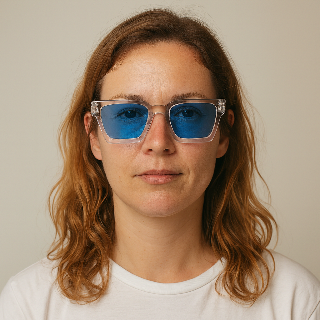 De slående blå linserna ger en trendig twist och förvandlar vilken outfit som helst till ett statement. Perfekta för både vardag och stilfulla tillfällen.